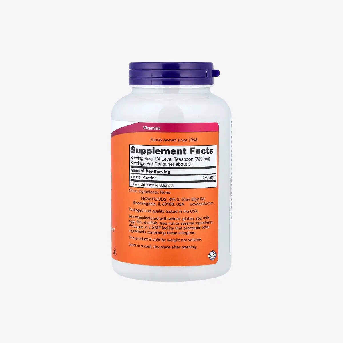 NOW Inozitol vsebuje 730 mg mio-inozitola na eno merico in je primeren za vsakodnevno dopolnjevanje prehrane. Primeren je za odrasle, ki želijo:
