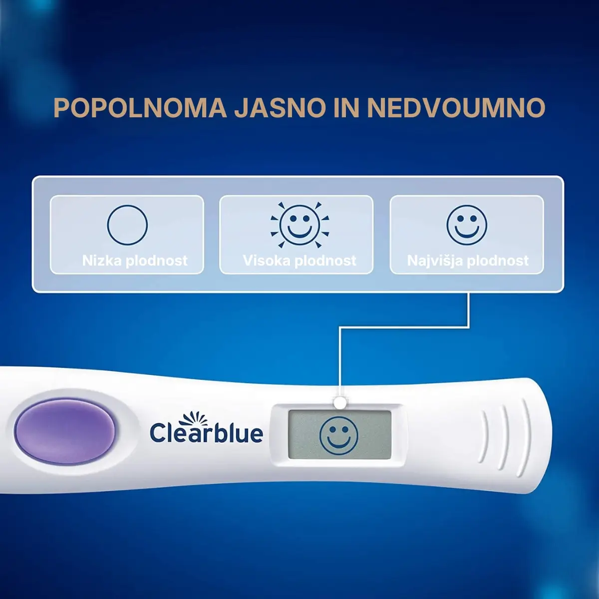 Clearblue Digital Advanced ovulacijski test spremlja dva ključna hormona plodnosti – estrogen in LH – ter običajno prepozna 4 ali več plodnih dni v ciklu. Test zazna porast LH, ki običajno nastopi 24–36 ur pred ovulacijo, zato omogoča natančnejše spremljanje plodnih dni cikla.